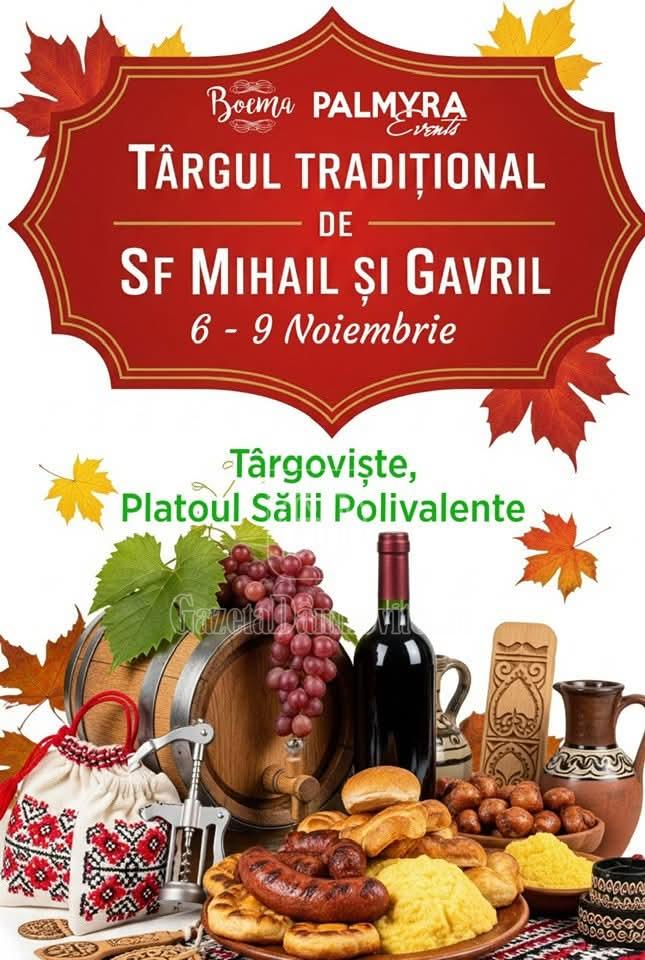 În perioada 6 – 9 noiembrie, pe Platoul Sălii Polivalente din Târgoviște, sunteți așteptați la o experiență autentică plină de arome, culoare și tradiție – la ediția anuală a Târgului Tradițional de Sf. Mihail și Gavril!