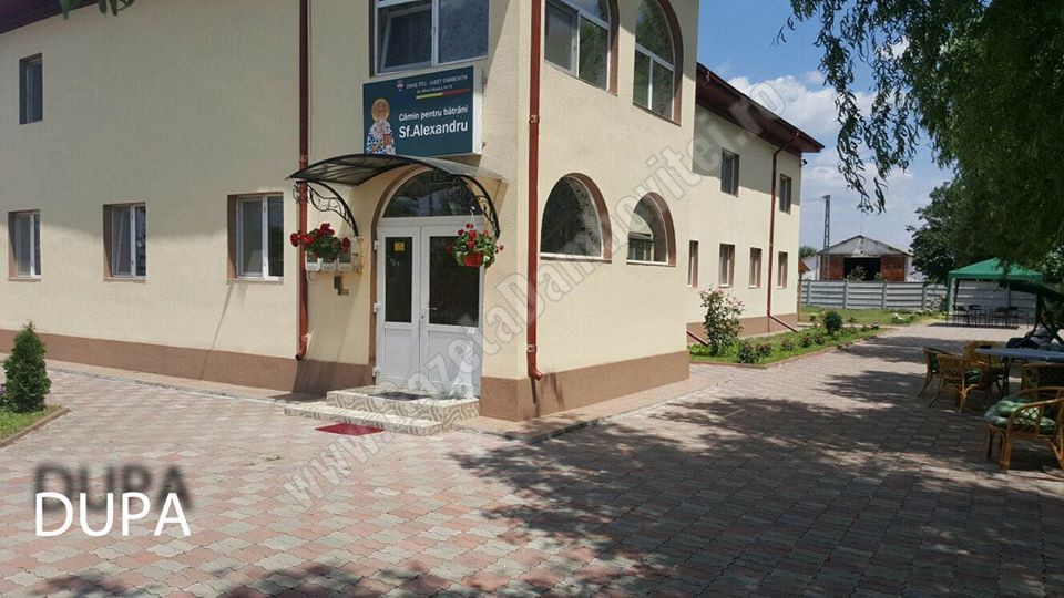 Povestea căminului începe în 2009 – 2010, când primarul PDL de a vremea respectivă, Ilie Dinu, a obținut fonduri pentru construția unui cămin de bătrâni. Clădirea a fost finalizată în 2010, dar primăria nu a putut să o pună în funcțiune, așa că s-a degradat constant, până în 2016, când în urma unei licitații un investitor a preluat-o și a renovat-o, aici funcționând un cămin de bătrâni cu 30 de locuri. Pe lângă clădirea inițială, investitorul a mai ridicat anexe fără de care nu-și putea desfășura activitatea, precum bucătărie sau sală de mese.