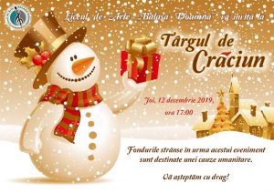 Joi, 12 decembrie 2019,la ora 17:00, Liceul de Arte „Bălașa Doamna”, invită pe toți cei care vor sa ajute, la evenimentul denumit „Târgul de Crăciun”.