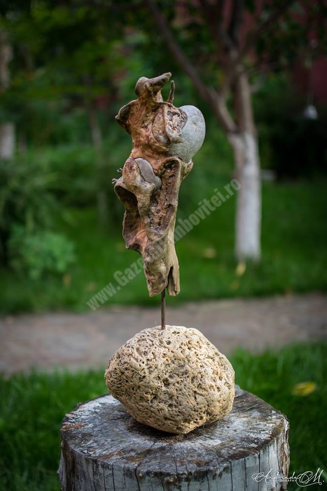 Ciprian Ştefan Olteanu se inspiră şi se foloseşte de natură pentru creaţiile sale. Tânărul artist a început să combine lemnul cu patra şi metalul, în urma deselor drumeţii în natură, alături de familie.