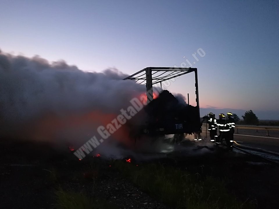 Incendiu la o remorcă încărcată cu baloţi de ceai vrac, pe autostrada A1-km79 (pe raza comunei Petreşti). Condorm ISU, cauza probabilă a producerii incendiului: scurtcircuit electric provocat de un conductor electric defect ori neizolat corespunzător. Incendiul s-a produs în timp ce autocamionul era în mers, şoferul decuplând capul tractor de remorcă. Au ars elementele combustibile din structura remorcii şi cca.11 tone de ceai vrac sub formă de baloţi.