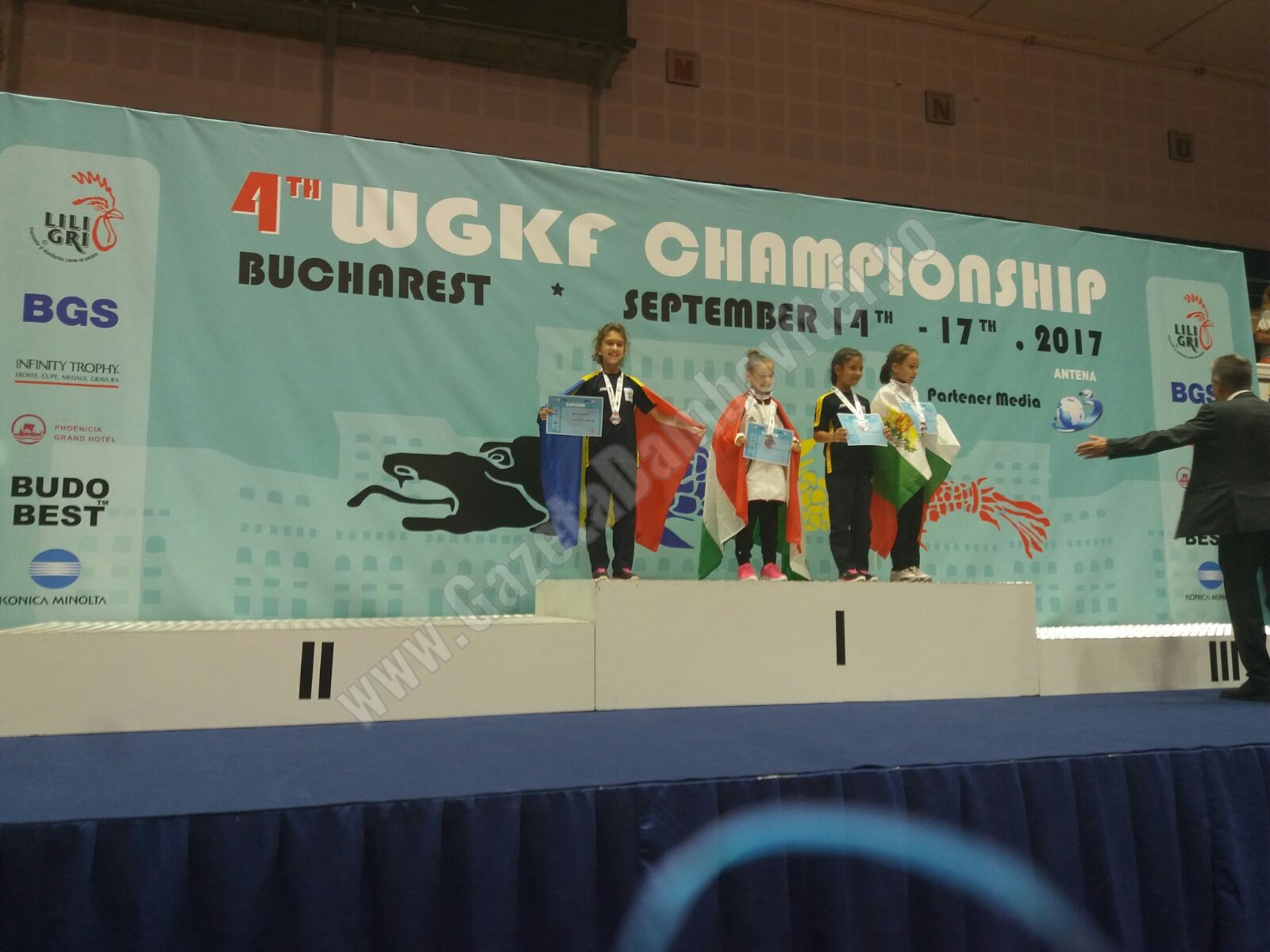 Ana-Maria Hura-Tudor (copii) și Marius Sebastian Roșu (seniori) au participat din partea asociației Munteanu Sport Club la Campionatul Mondial de Karate Goju Ryu pentru copii, minicadeți, juniori, under21, seniori și veterani, organizat la Sala Polivalentă din București, în perioada 13-17 septembrie 2017.