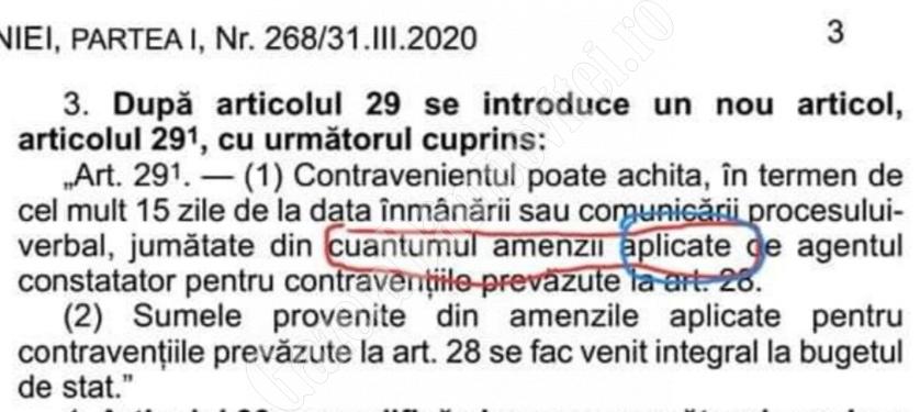 Astfel, amenzile pentru persoanele fizice care nu respectă ordonanţele militare au crescut şi au următoarele valori: minim 2.000 lei şi maxim 20.000 lei, faţă de minim 100 şi maxim 5.000 de lei, cât erau până acum.