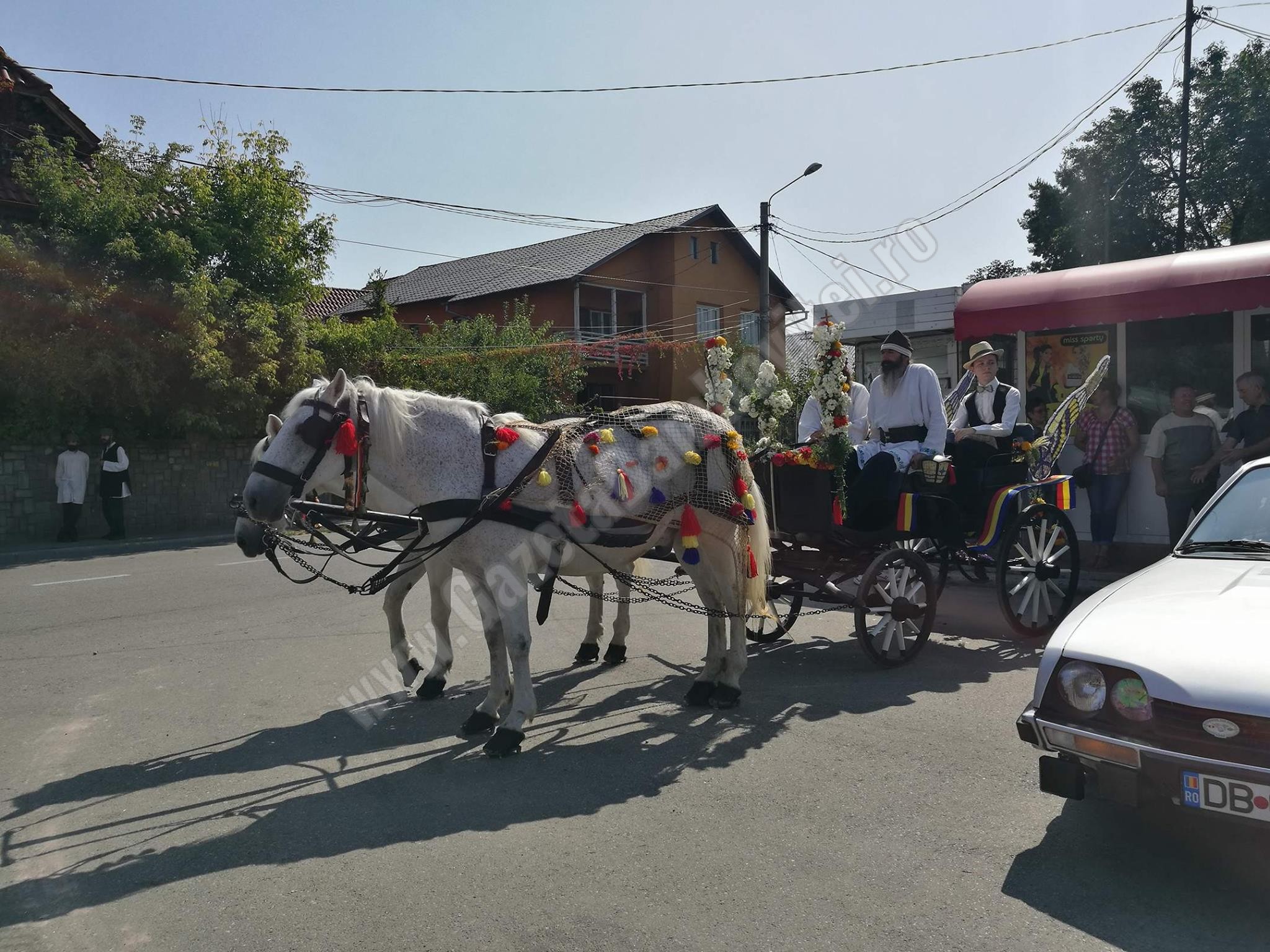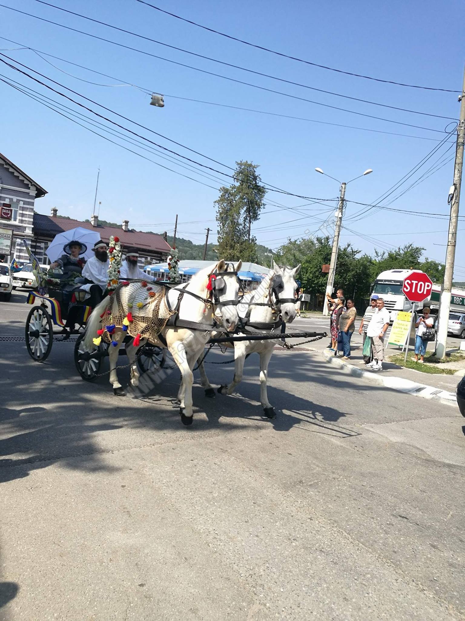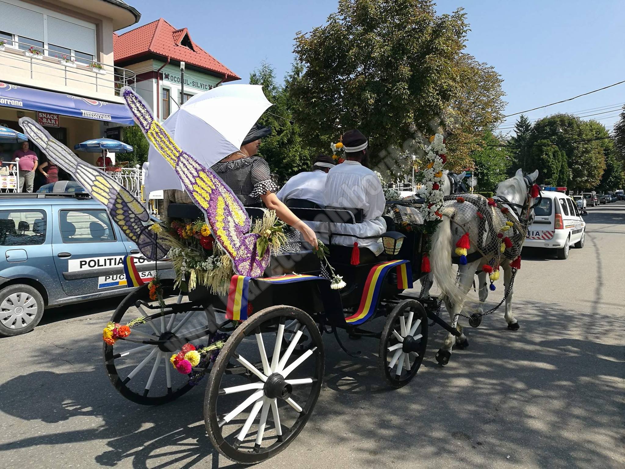 Domnii și domnițele au oferit flori spectatorilor care i-au admirat de pe trotuare.